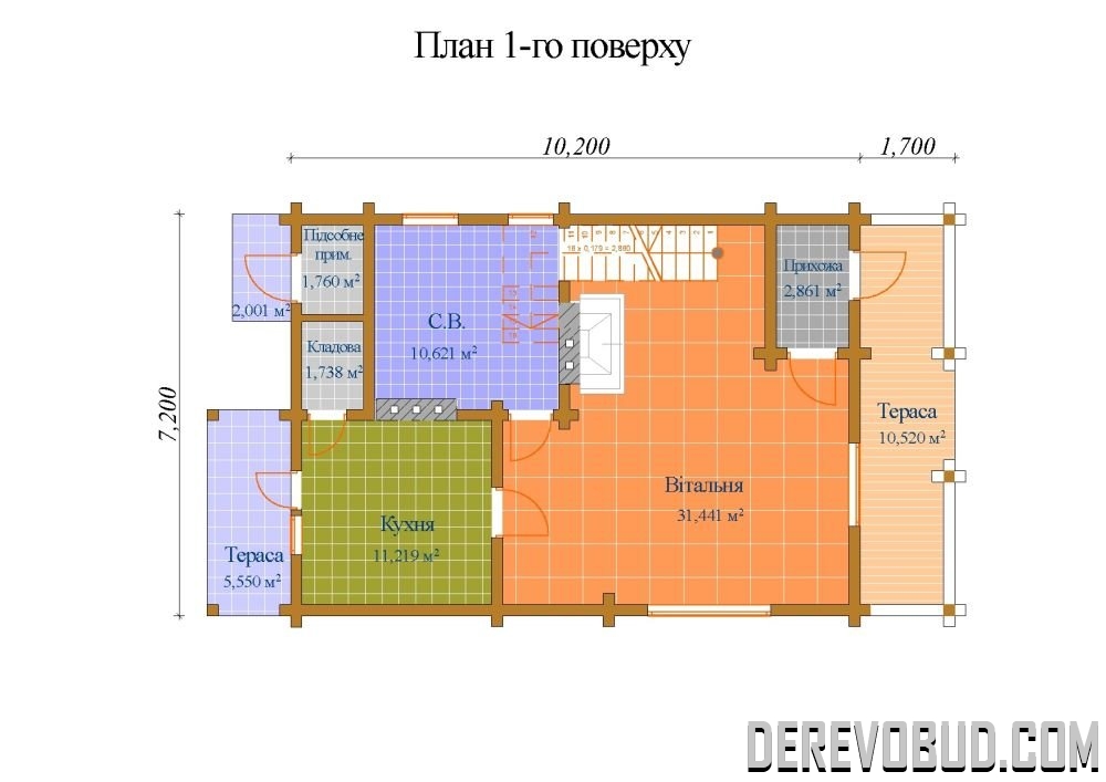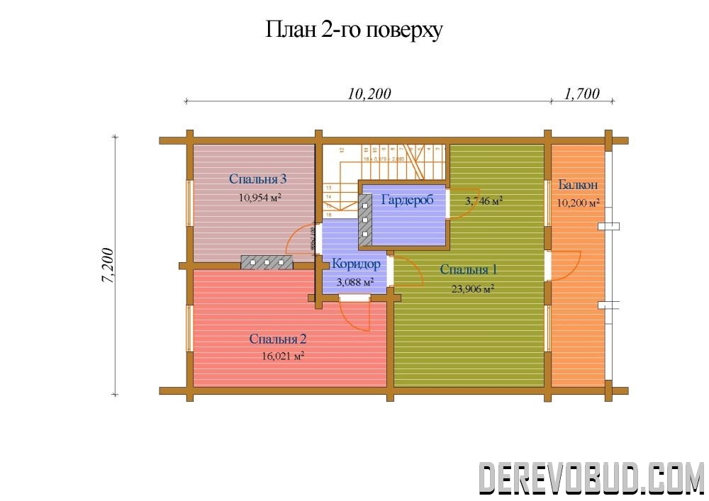 Будинок 117,35 кв.м Брус 200х185 мм. 10,2 х 7,2 м 59,64 м2 - 1 поверх 57,71 м2 - 2 поверх 117,35 м2 - загальна площа