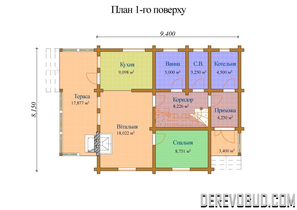 Будинок 135,103 кв.м Брус 200х185 мм. 8,15 х 7,6 м 82,354 м2 - 1 поверх 52,749 м2 - 2 поверх 135,103 м2 загальна площа