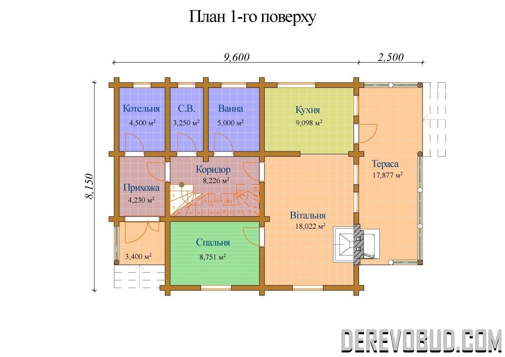 Будинок 135,106 кв.м Оциліндрований брус - 240 мм. 9,6 х 8,15 м 82,354 м2 - 1 поверх 52,752 м2 - 2 поверх 135,106 м2 загальна площа