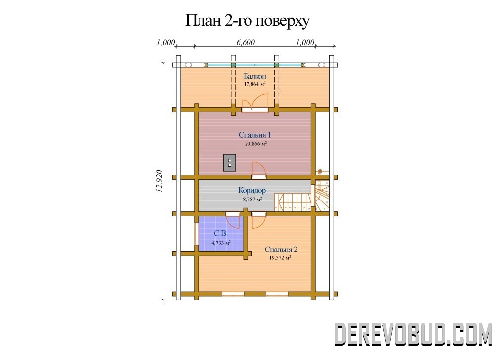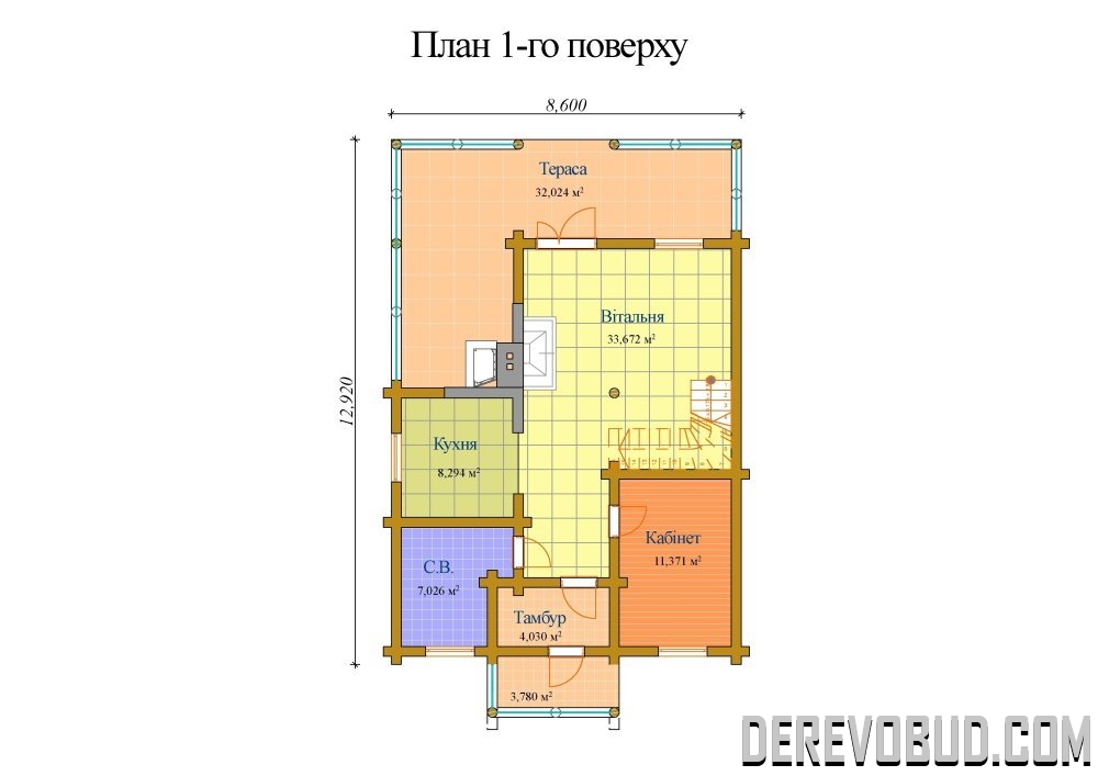 Будинок 163,032 кв.м Оциліндрований брус - 240 мм. 12,92 х 8,6 м 100,197 м2 - 1 поверх 62,835 м2 - 2 поверх 163,032 м2 загальна площа