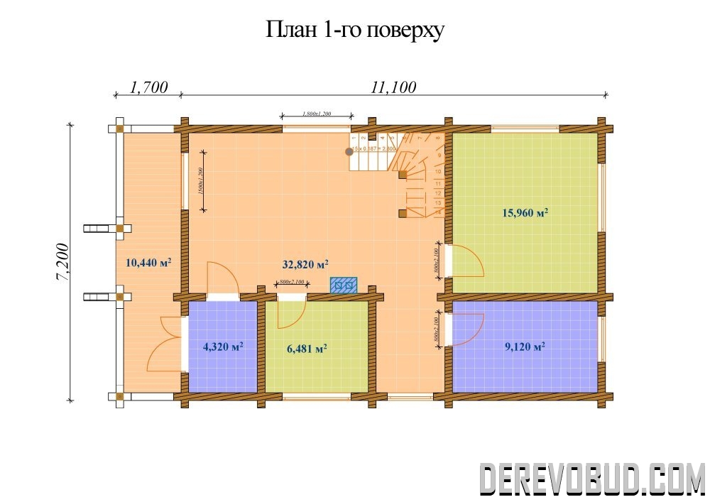 Будинок 165,416 кв.м Брус 200х185 мм. 11,1 х 7,2 м 79,141 м2 - 1 поверх 85,708 м2 - 2 поверх 165,416 м2 загальна площа