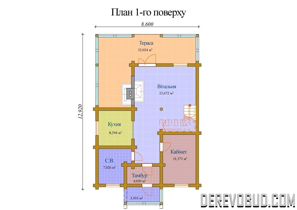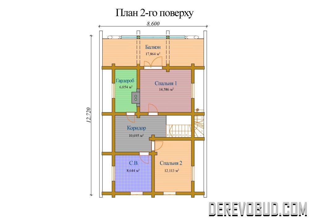 Будинок 170,304 кв.м Оциліндрований брус - 220 мм. 12,72 х 8,6 м 100,348 м2 - 1 поверх 69,956 м2 - 2 поверх 170,304 м2 загальна площа
