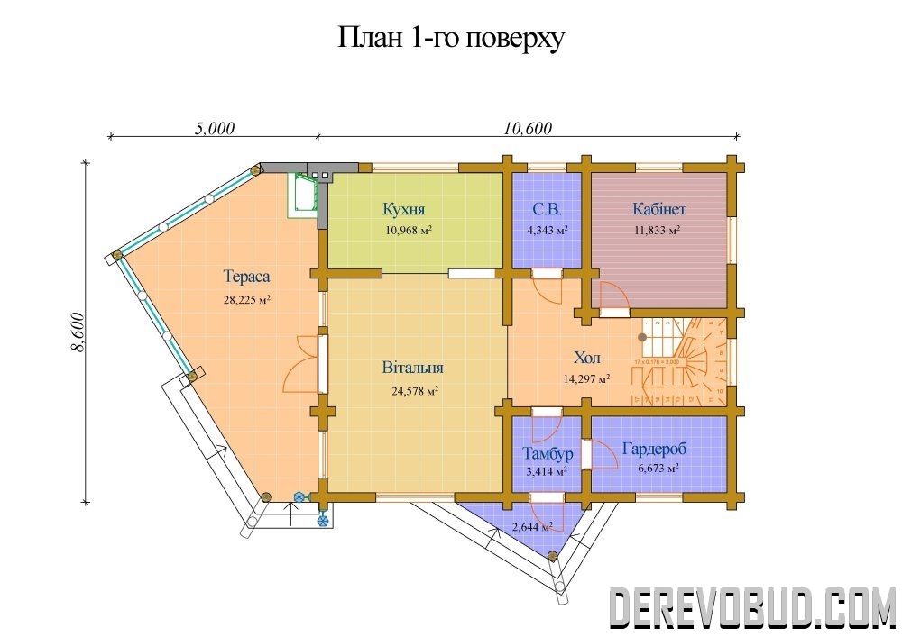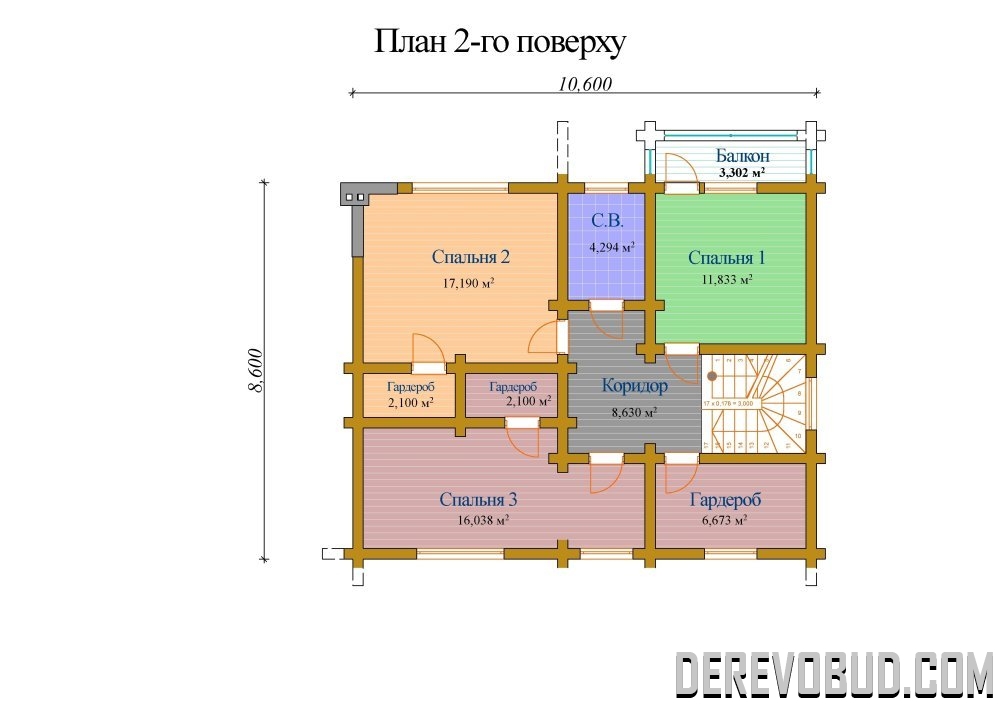 Будинок 179,135 кв.м Оциліндрований брус - 240 мм. 8,6 х 10,6 м 106,975 м2 - 1 поверх 72,160 м2 - 2 поверх 179,135 м2 загальна площа