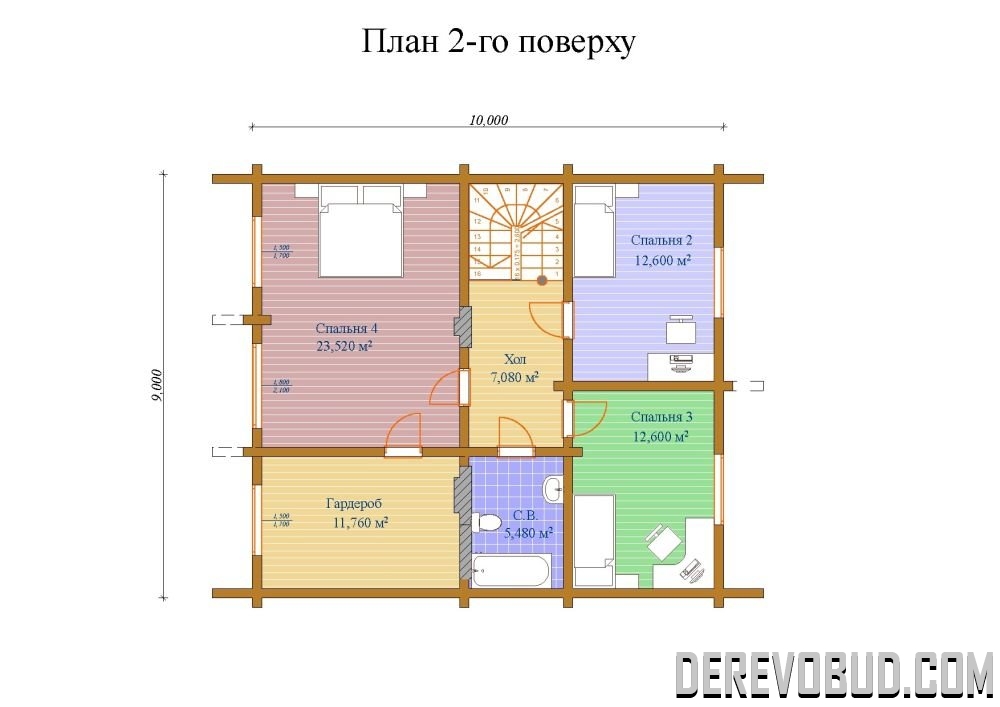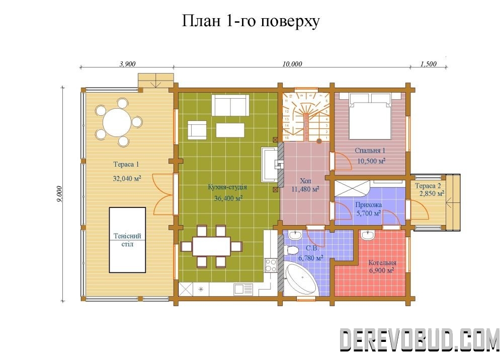 Будинок 185,69 кв.м Брус 200х185 мм. 10 х 9 м 77,76 м2 - 1 поверх 34,89 м2 - тераса 73,04 м2 - 2 поверх 185,69 м2 - загальна площа