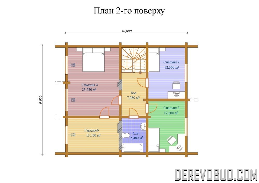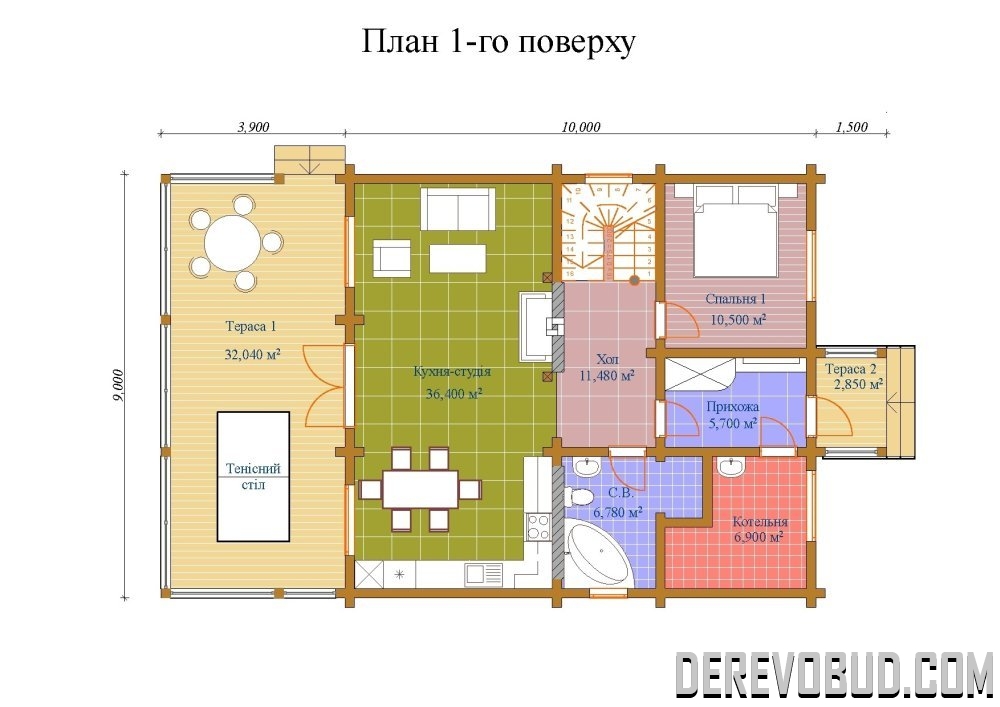 Будинок 185,690 кв.м Брус 200х185 мм. 2050 м п. 10 х 9 м 77,76 м2 - 1 поверх 34,89 м2 - тераса 73,04 м2 - 2 поверх 185,69 м2 загальна площа