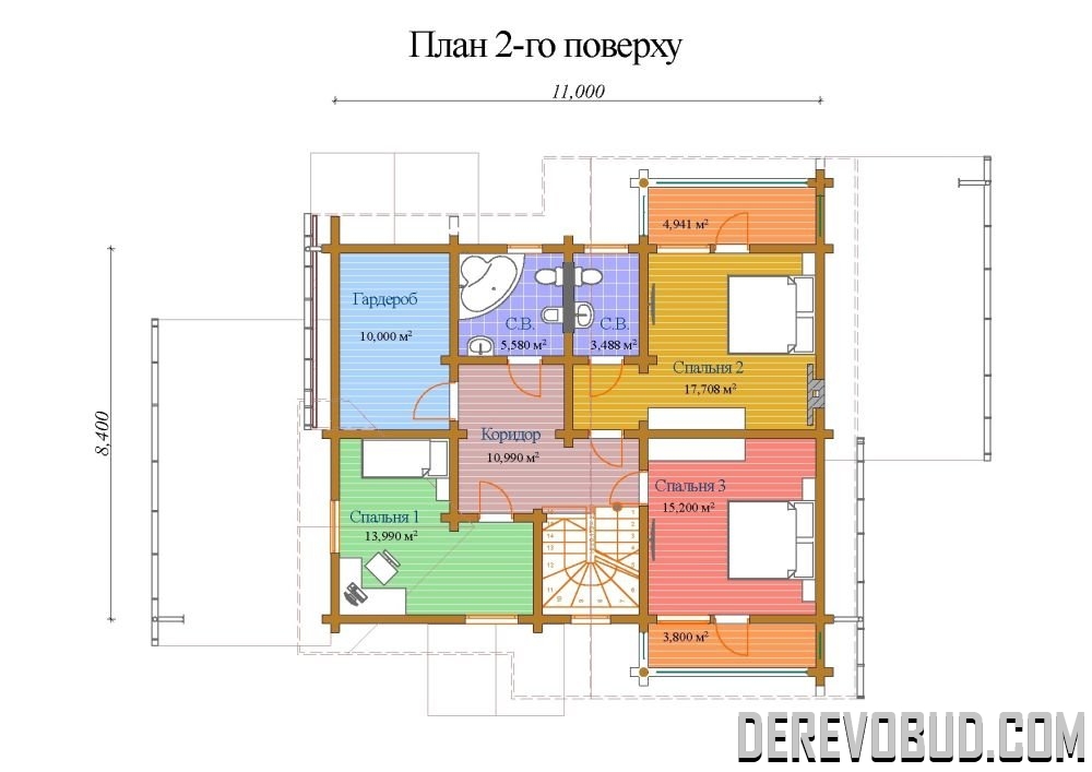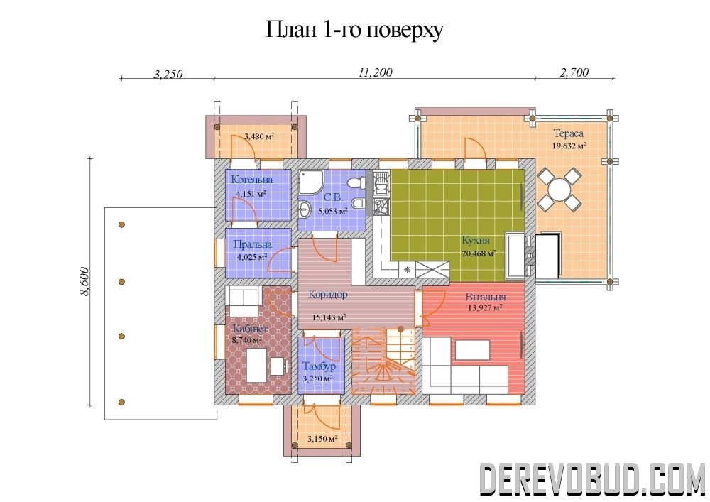 Будинок 186,716 кв.м 1 поверх - цегла 2 поверх - оциліндрований брус - 220 мм. 8,6 х 11,2 м 101,019 м2 - 1 поверх 85,697 м2 - 2 поверх 186,716 м2 - загальна площа