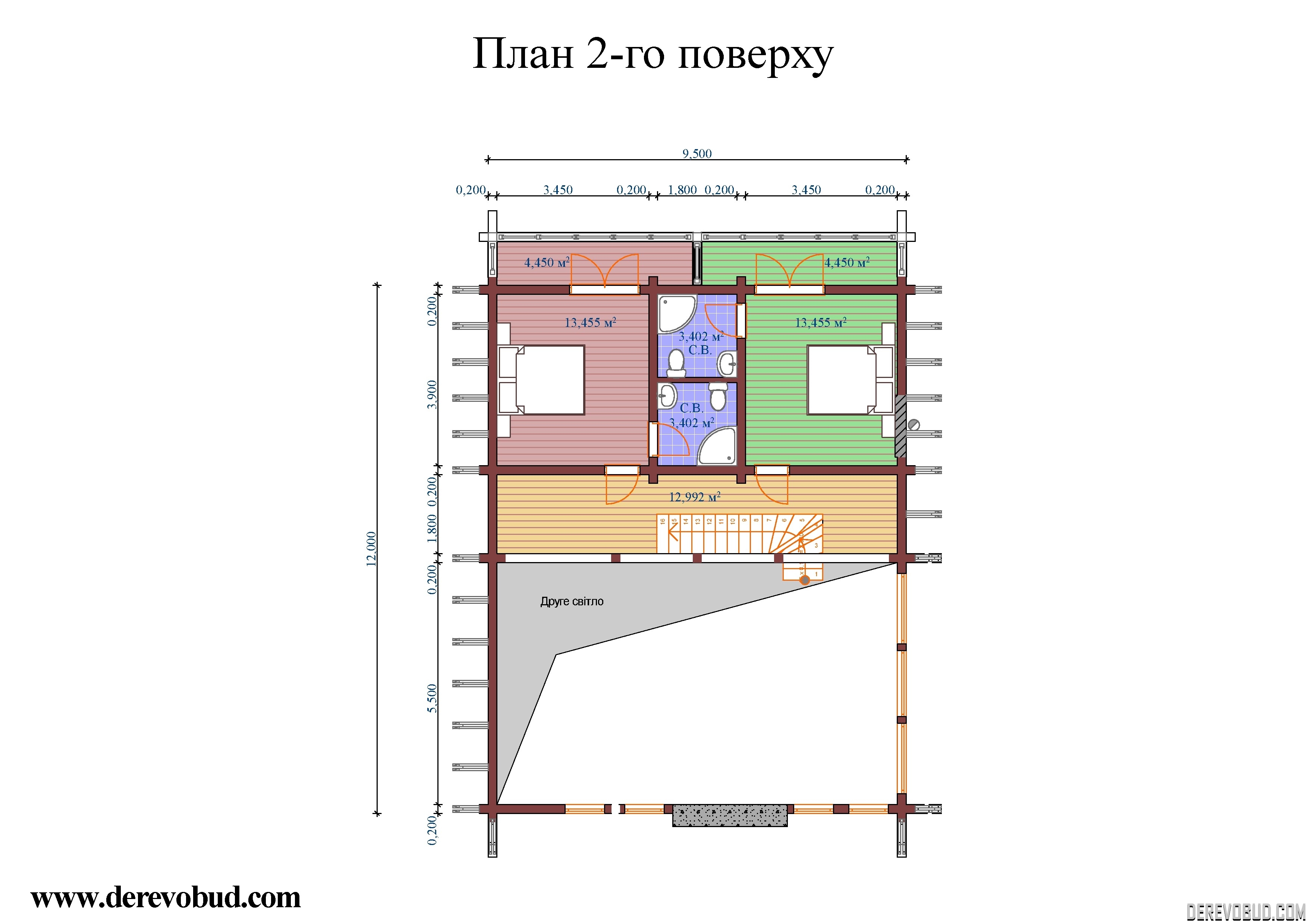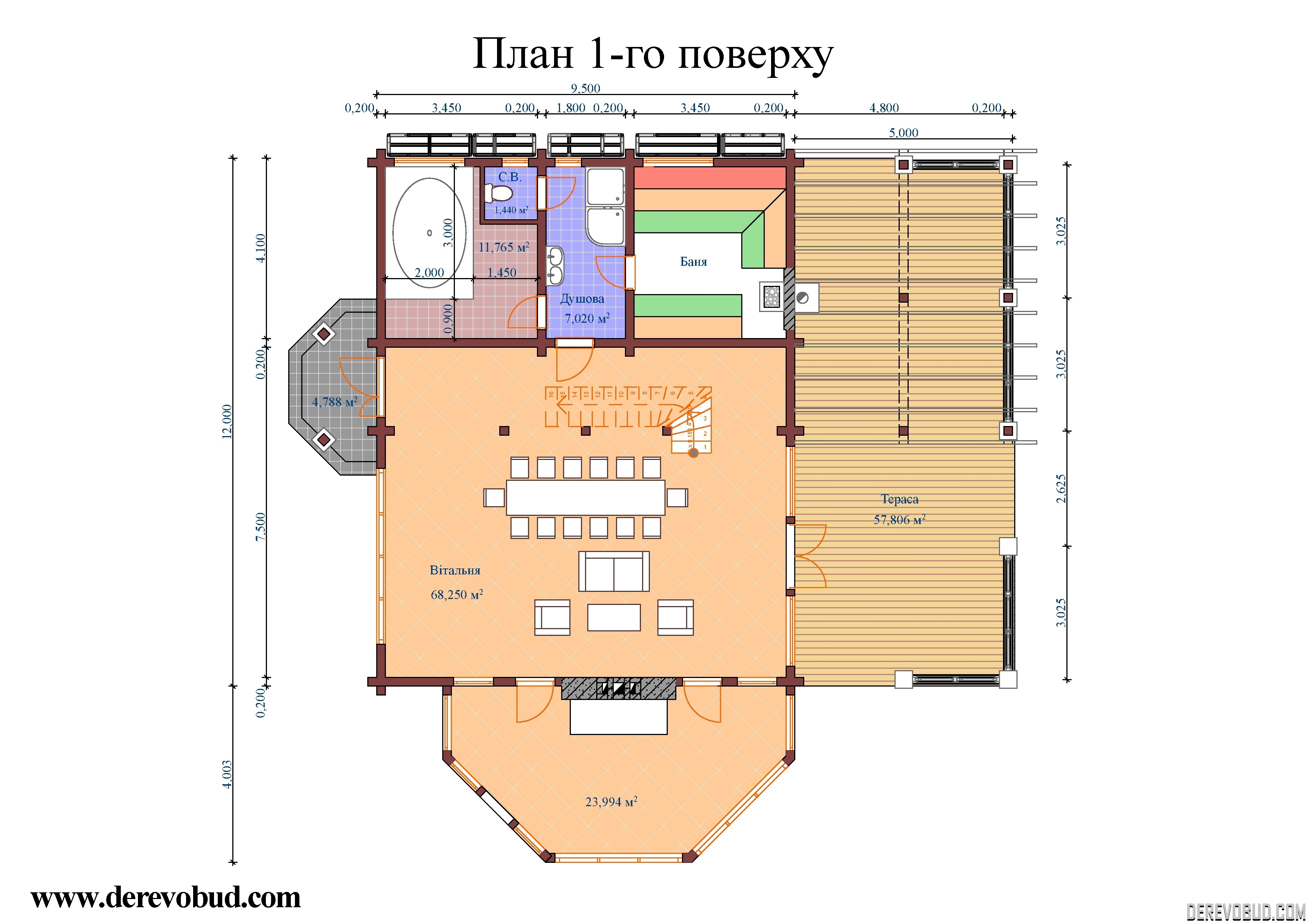 Будинок 202,37 кв.м. Будинок 12 × 9,5 м. 125,67 м. + тераса 62,59 м. - 1 поверх 76,70 м. + балкон 8,9м. - 2 поверх 202,37 кв.м загальна площа