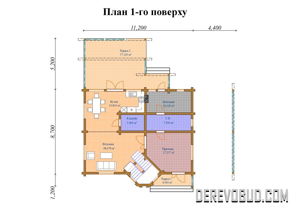 Будинок 208,470 кв.м Брус 200х185 мм. 11,2 х 8,7 м 129,055 м2 - 1 поверх 79,415 м2 - 2 поверх 208,470 м2 загальна площа