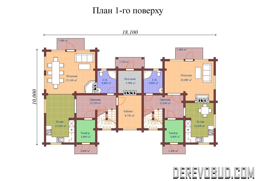 House 275,464 sq.m. Bar 200x185 mm. 18.1 x 10 m 140,528 sq.m. - 1st floor 134,936 sq.m. - 2nd floor 275,464 sq.m. total area