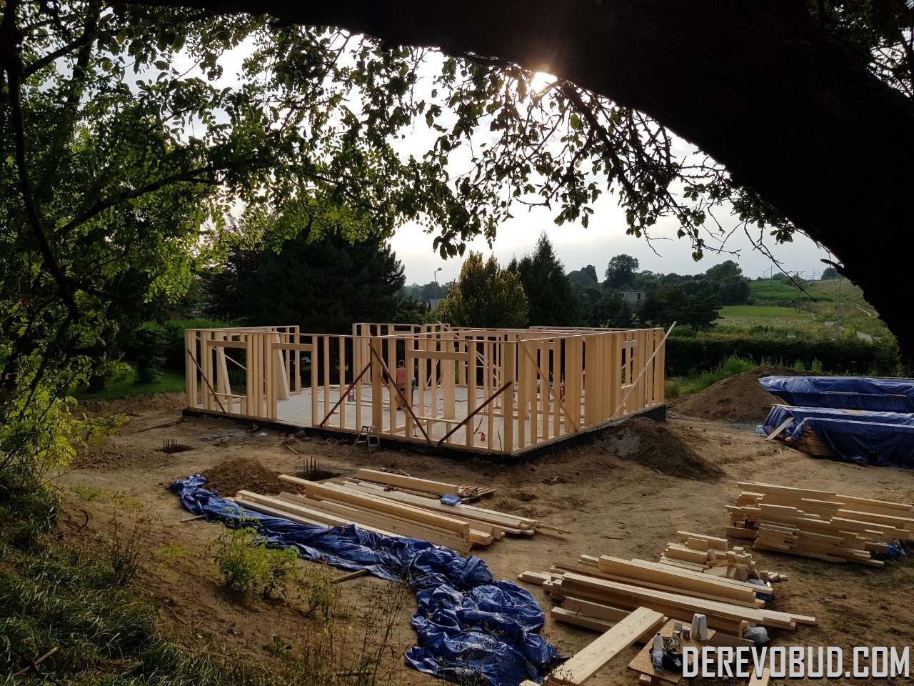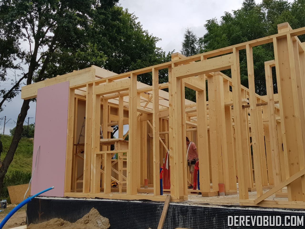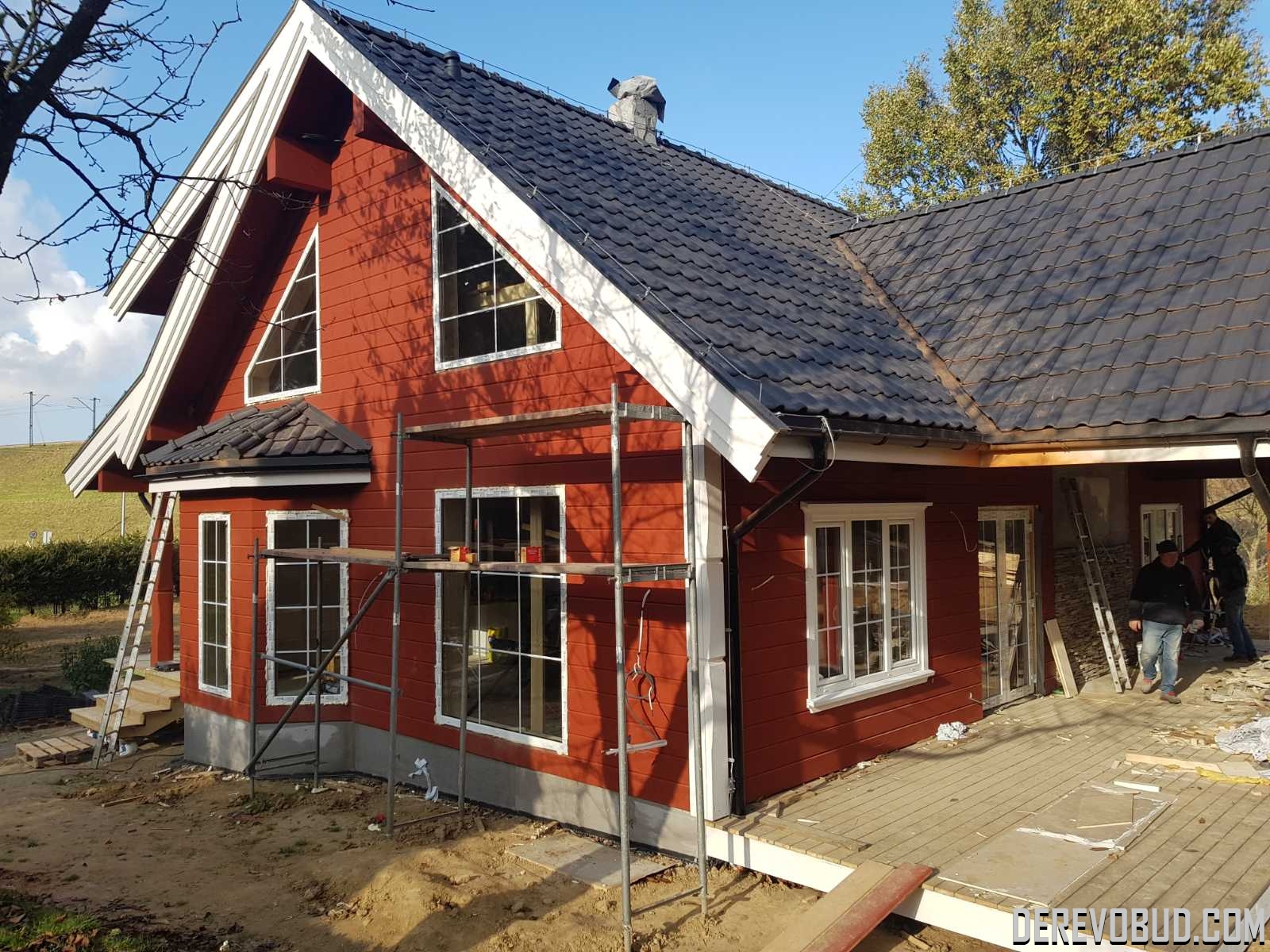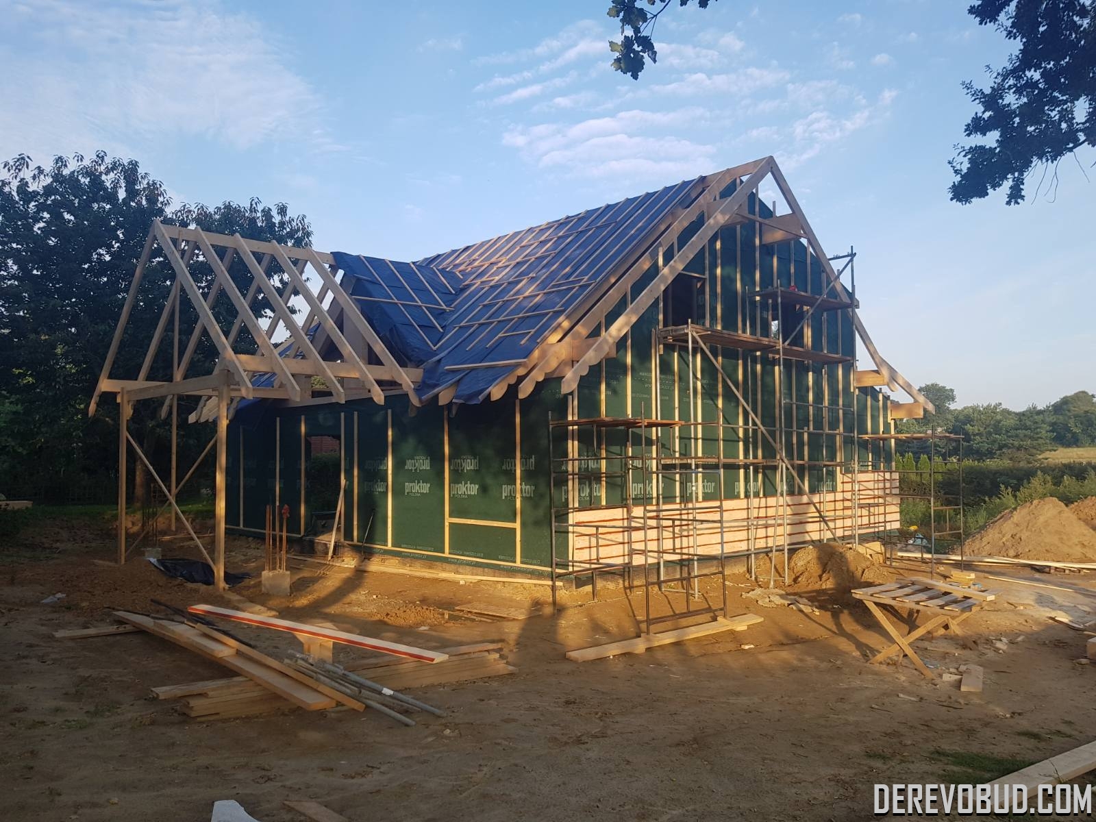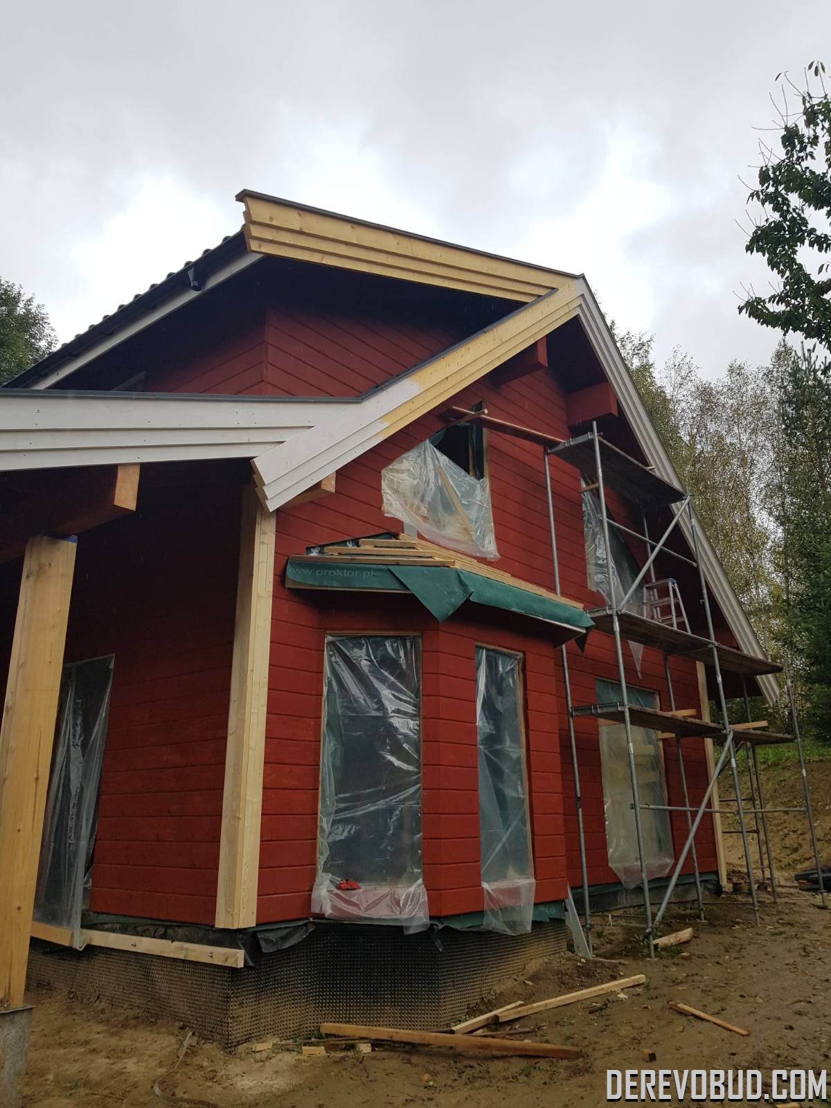 Каркасний будинок пл. 200 м.кв у Польщі Дерев'яний будинок з каркасу по "канадській технології" загальною площею 200 м.кв. збудований у Польщі. Товщина стіни каркасного будинку близько 250 мм забезпечує дерев'яному будинку теплозбереження та шумоізоляцію для комфортного проживання.