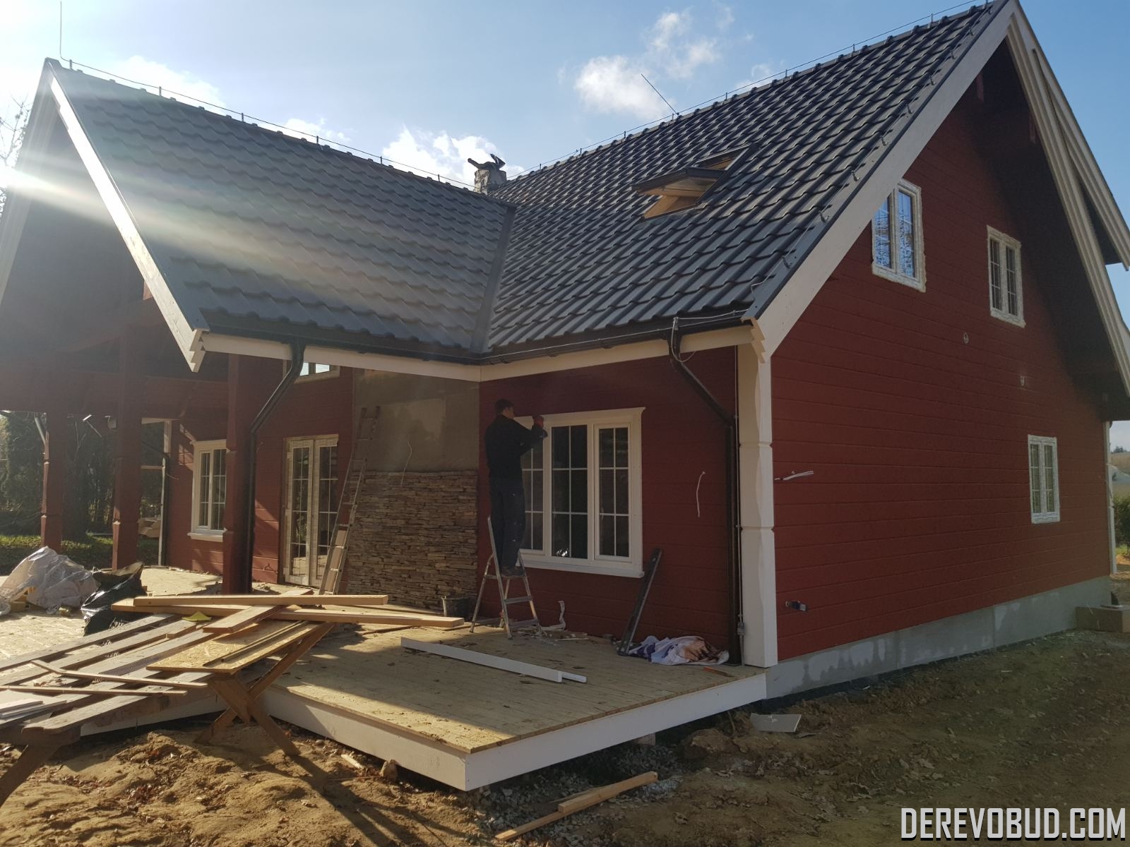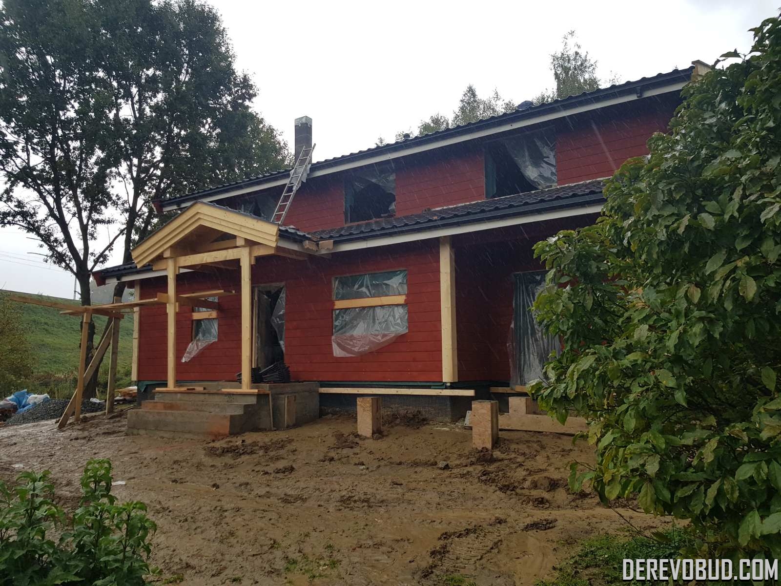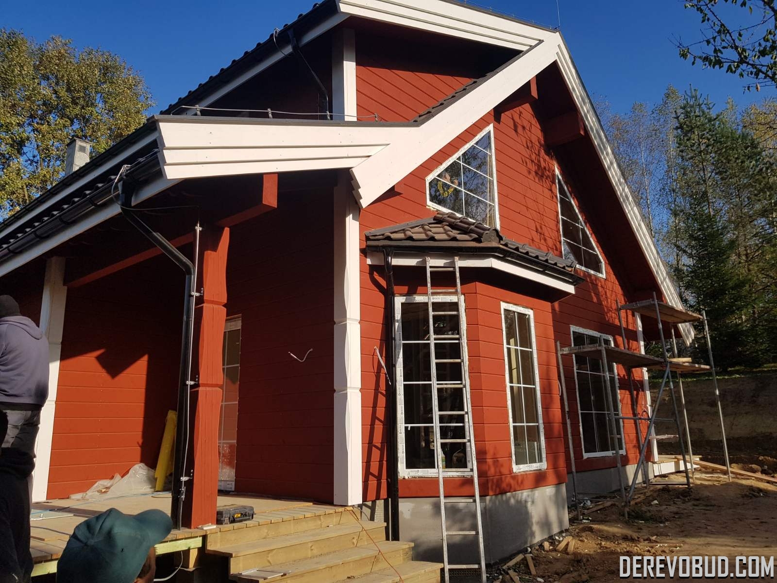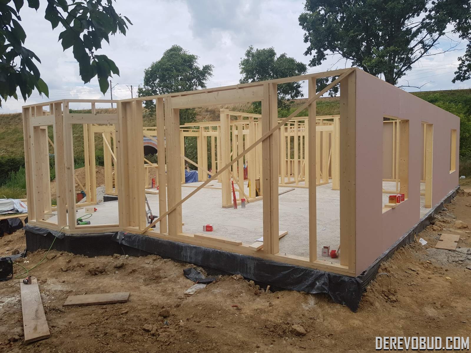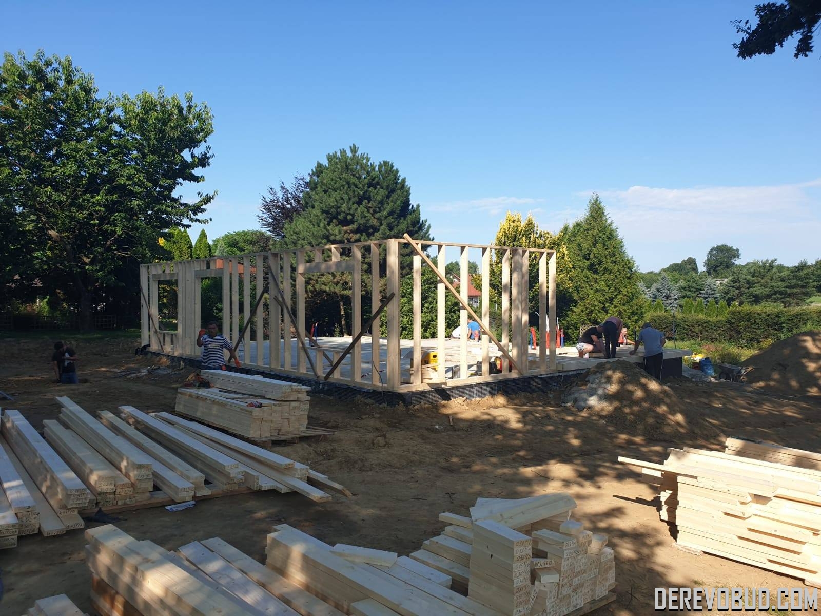 Каркасний будинок пл. 200 м.кв у Польщі Дерев'яний будинок з каркасу по "канадській технології" загальною площею 200 м.кв. збудований у Польщі. Товщина стіни каркасного будинку близько 250 мм забезпечує дерев'яному будинку теплозбереження та шумоізоляцію для комфортного проживання.