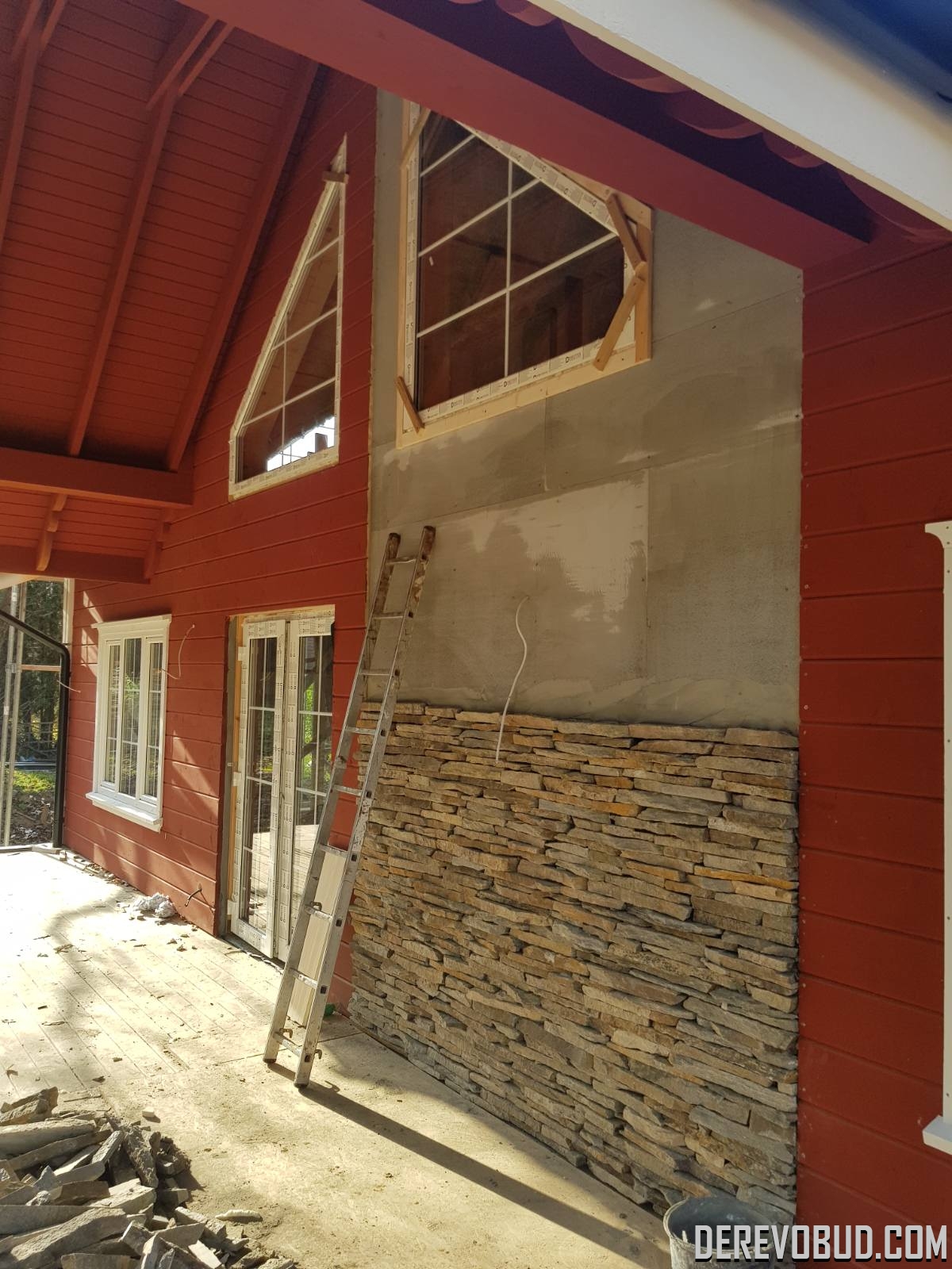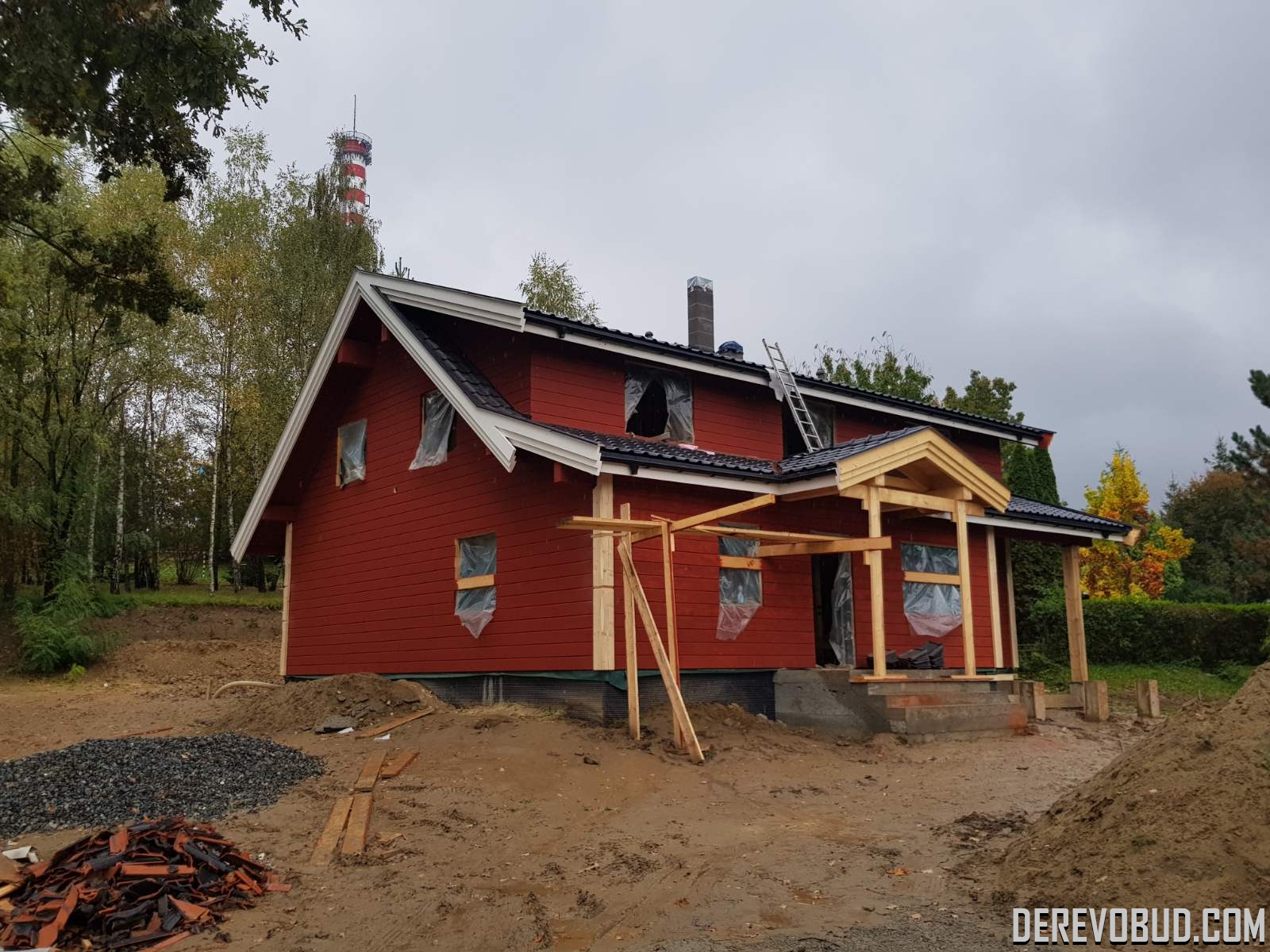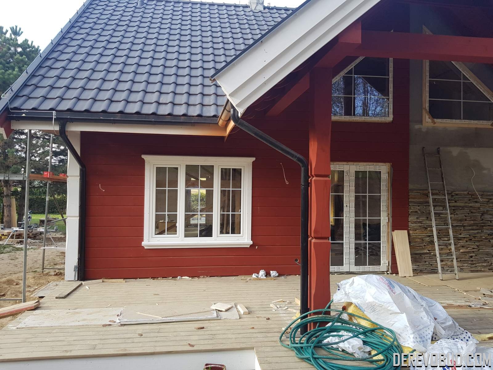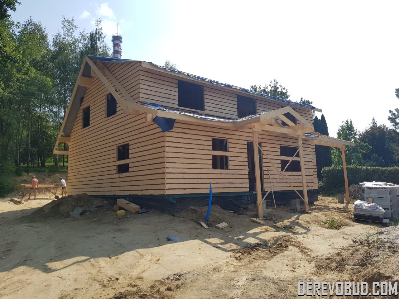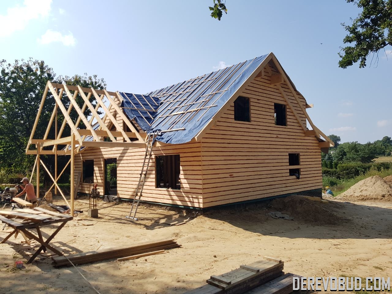 Каркасний будинок пл. 200 м.кв у Польщі Дерев'яний будинок з каркасу по "канадській технології" загальною площею 200 м.кв. збудований у Польщі. Товщина стіни каркасного будинку близько 250 мм забезпечує дерев'яному будинку теплозбереження та шумоізоляцію для комфортного проживання.